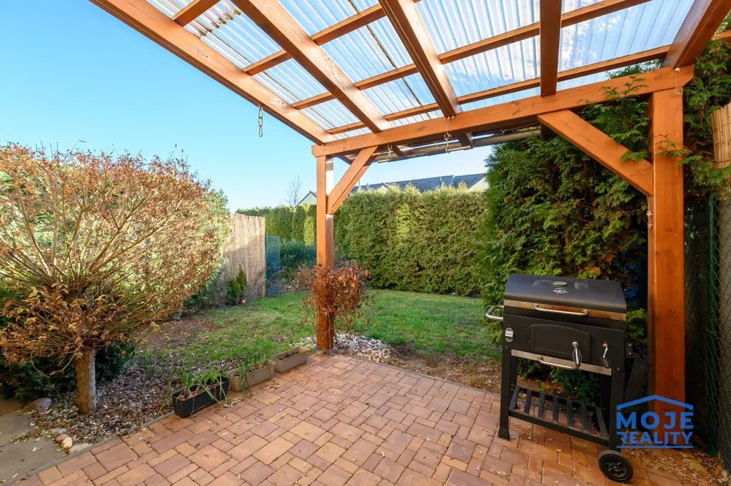 Dům je vytápěn vlastním plynovým kondenzačním kotlem, který zároveň slouží k ohřevu vody. Pro zvýšení bezpečnosti je instalován elektronický zabezpečovací systém. Parkovací kapacitu doplňují dvě venkovní stání přímo před domem. Udržovaná zahrada s terasou a pergolou nabízí příjemné místo pro odpočinek a relaxaci.