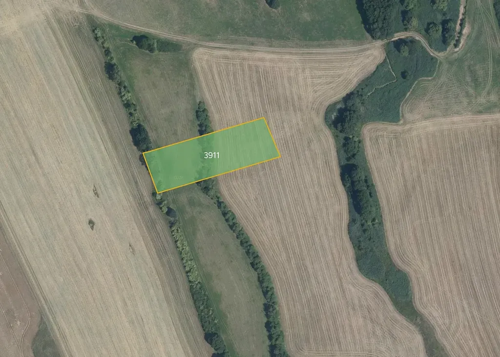 Předmětem prodeje je parcela č. 3911, zapsaná na LV 2064. Celková výměra činí 5 653 m² a celá plocha je vedena jako orná půda. Současný zemědělec ji užívá jako trvale travní porost.