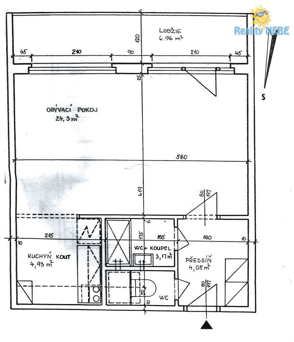 Součástí je kuchyňská linka. Koupelna je se sprchový koutem, WC je samostatné.