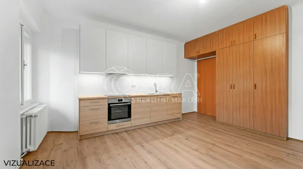 Byt se skládá ze vstupní chodby s věšákem a zrcadlem, samostatné kuchyně s plně vybavenou kuchyňskou linkou a navazující jídelny s dostatkem prostoru pro jídelní stůl. Podlahové vytápění zde zajišťuje příjemný komfort při každodenním užívání. Součástí bytu je dále velkorysá místnost vhodná jako hlavní obytný prostor, která disponuje patrem na spaní a umožňuje variabilní uspořádání nábytku. Největší pokoj v bytě lze využít jako hlavní ložnici, obývací pokoj nebo samostatnou bytovou jednotku v rámci dvougeneračního řešení – v případě zájmu je zde možné vybudovat druhou kuchyň.