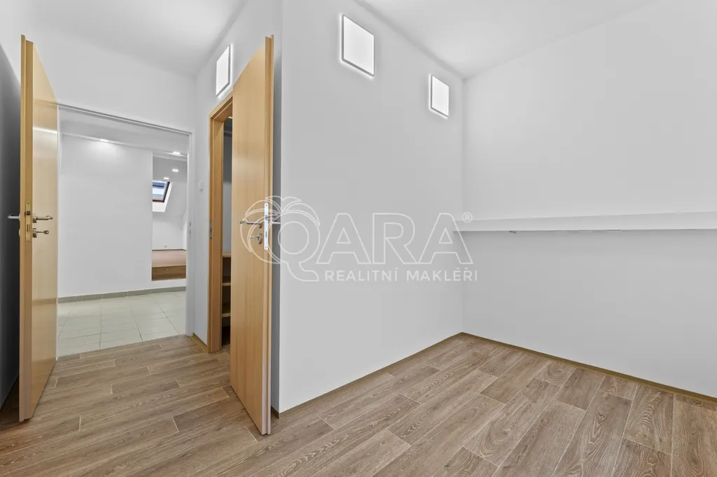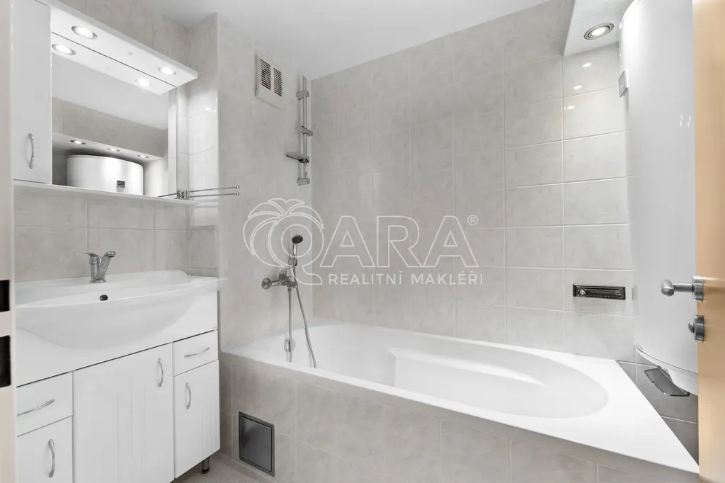 Další dva menší pokoje jsou ideální jako ložnice, dětský pokoj, pracovna či pokoj pro hosty, přičemž jeden z nich nabízí praktický úložný prostor v podobě patra. K jedné z ložnic náleží také samostatná šatna.Byt disponuje dvěma koupelnami vybavenými vanou, sprchovým koutem a toaletou, dále je k dispozici samostatná toaleta. Pračka je součástí vybavení.