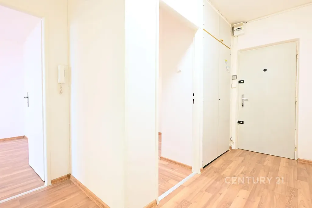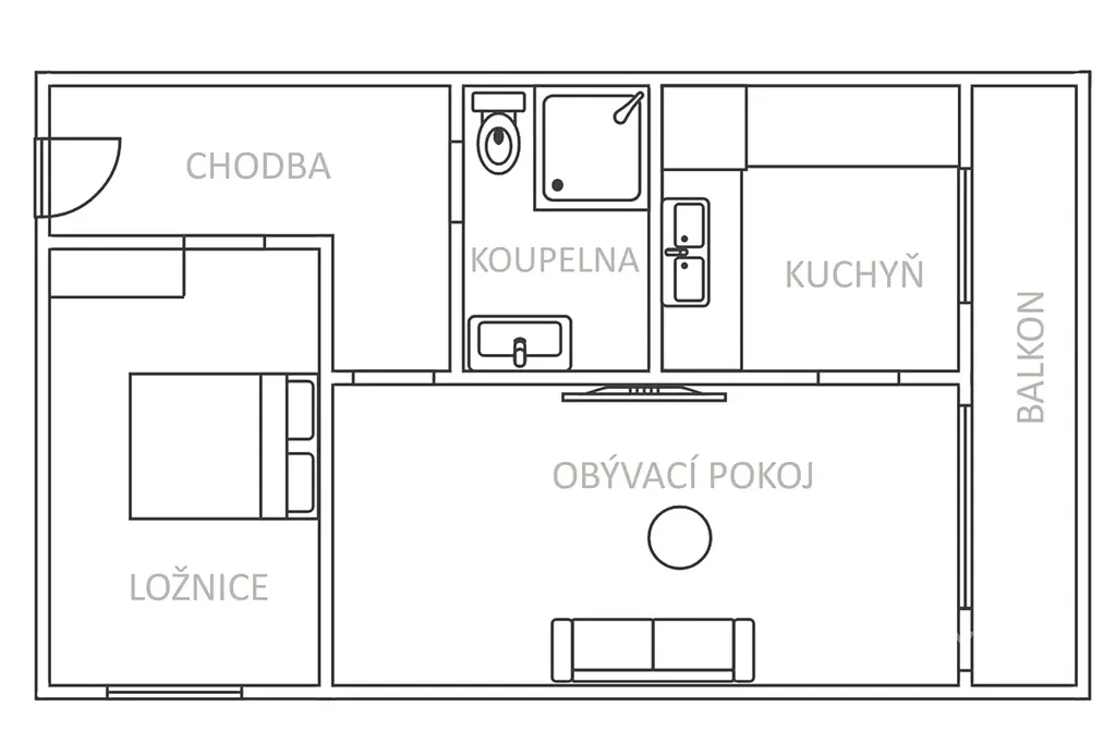 Byt se nachází v pátém nadzemním podlaží panelového domu. Disponuje vstupní chodbou, odkud se vchází do koupelny se sprchovým koutem, skříňkou, WC a umyvadlem. Z chodby se dostaneme do samostatného pokoje. Vedle této místnosti se nachází obývací pokoj. Odtud je vstup na lodžii. Poslední místností je kuchyně. Je tu kuchyňská linka rozdělená do dvou částí. Součástí je nový elektrický sporák.
