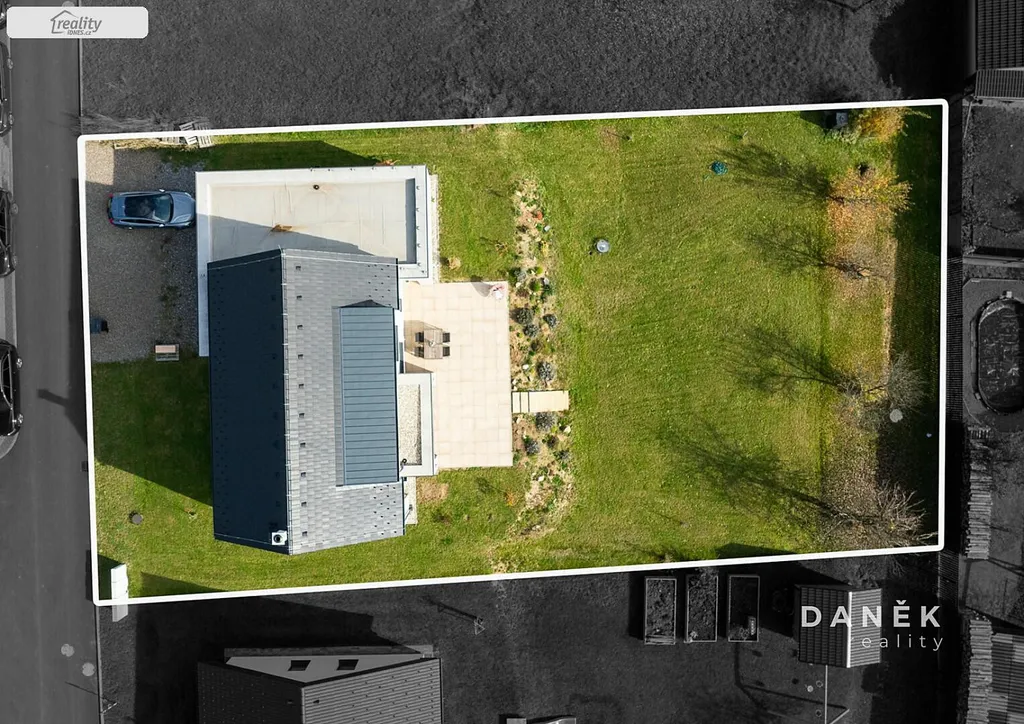 Pozemek o rozloze 907 m² nabízí dostatek prostoru pro zahradu, odpočinek i hry dětí, přitom zůstává nenáročný na údržbu. K dispozici je retenční nádrž s čerpadlem pro zavlažování, zpevněná příjezdová cesta, garáž a terasa s krásným výhledem. Ulice je velmi klidná, bez provozu a průjezdu aut – ideální pro rodinný život.