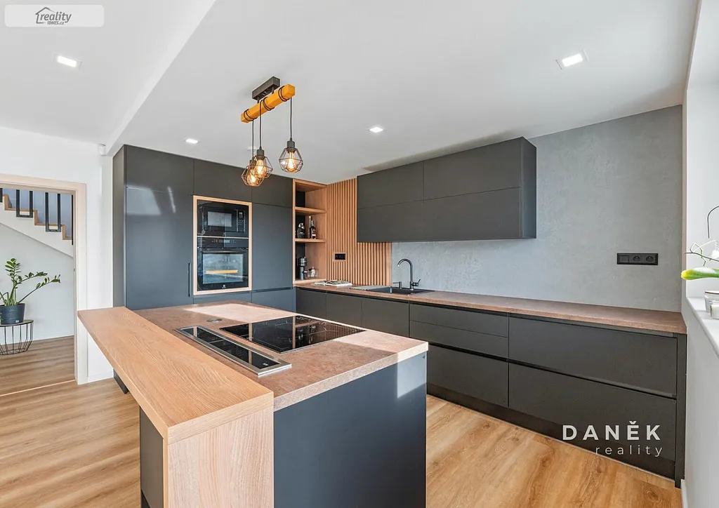 Tento elegantní dům o dispozici 5+kk a užitné ploše 146 m² (celková plocha včetně garáže 171 m²) zaujme na první pohled promyšlenou architekturou, kvalitním zpracováním a útulnou atmosférou. Byl kolaudován v roce 2023 a nachází se na slunném pozemku o výměře 907 m² v klidné části obce.