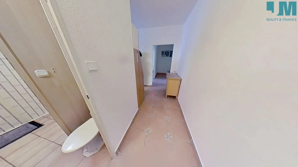 Dispozice bytu je velmi praktická a nabízí dostatek prostoru pro jednotlivce, pár i menší rodinu.