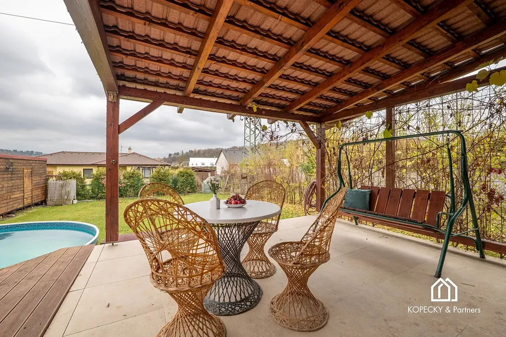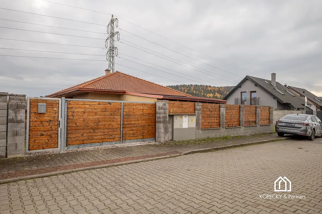 Dům s dispozicí 3+kk je umístěný na rovinatém pozemku o velikosti 678 m², který je kompletně oplocený a vybavený bránou na dálkové ovládání. Kromě garáže o ploše 30 m² nabízí pozemek také dostatek prostoru pro parkování dalších vozidel. Jižní orientace zahrady zajišťuje celodenní světlo, příjemnou atmosféru a komfort při každodenním užívání. Součástí je terasa navazující na obytnou část domu a venkovní bazén.