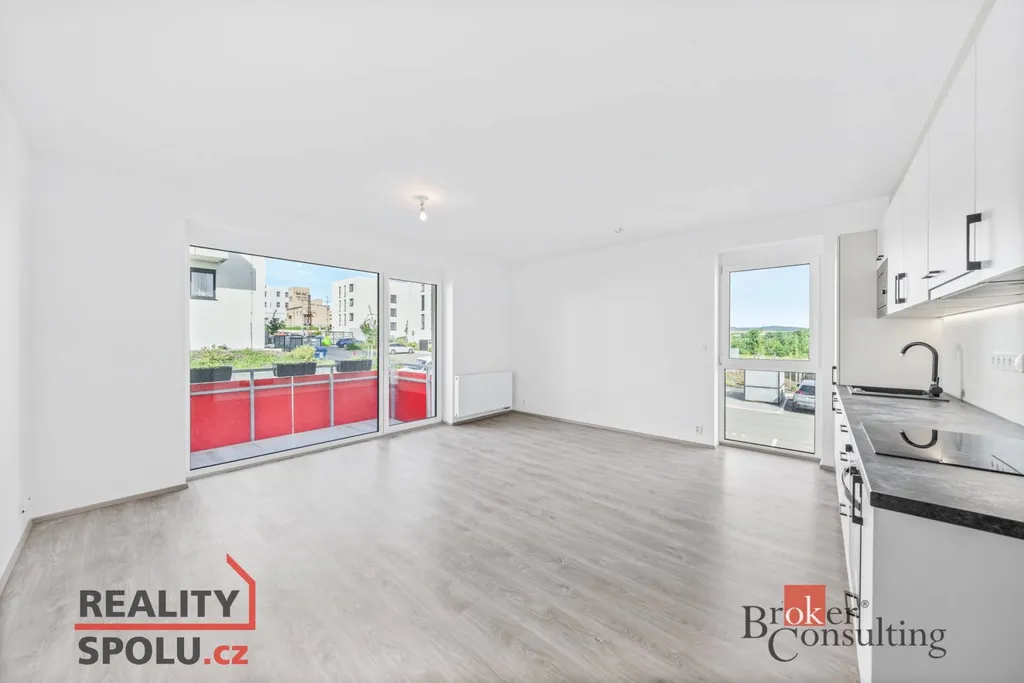 Byt se nachází ve druhém patře v novostavbě s moderním designem. Dispozice bytu zahrnuje prostornou moderní kuchyňskou linku se spotřebiči spojenou s obývacím pokojem, ložnici, dětský pokoj, koupelnu se sprchovým koutem a toaletou.
