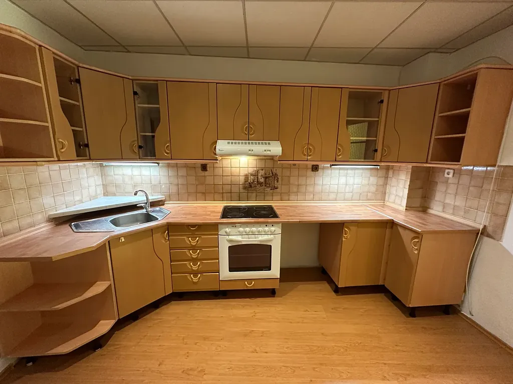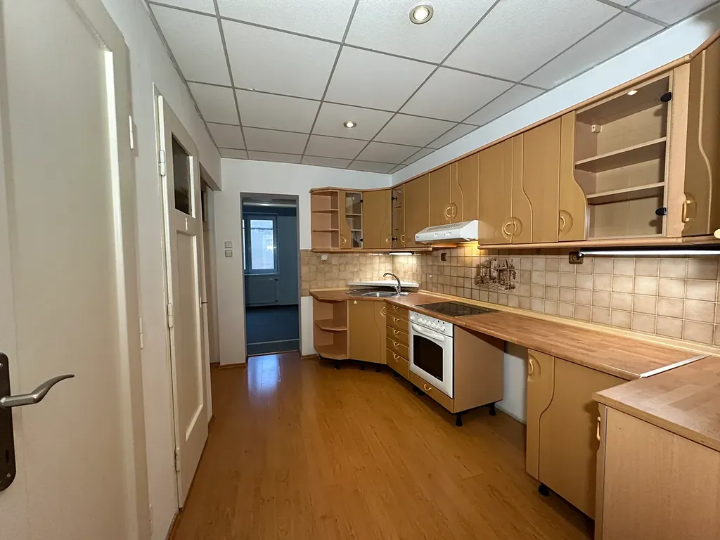 Podlahová plocha činí 55,4 m2, součástí jednotky je zděný sklep v 1.PP domu, vytápění zajišťuje úsporný kondenzační plynový kotel Vaillant s prostorovou regulací. Pokoje jsou neprůchozí, kuchyň umístěna ve středové části, WC samostatné závěsné zn. Villeroy&Boch, koupelna s vanou.
