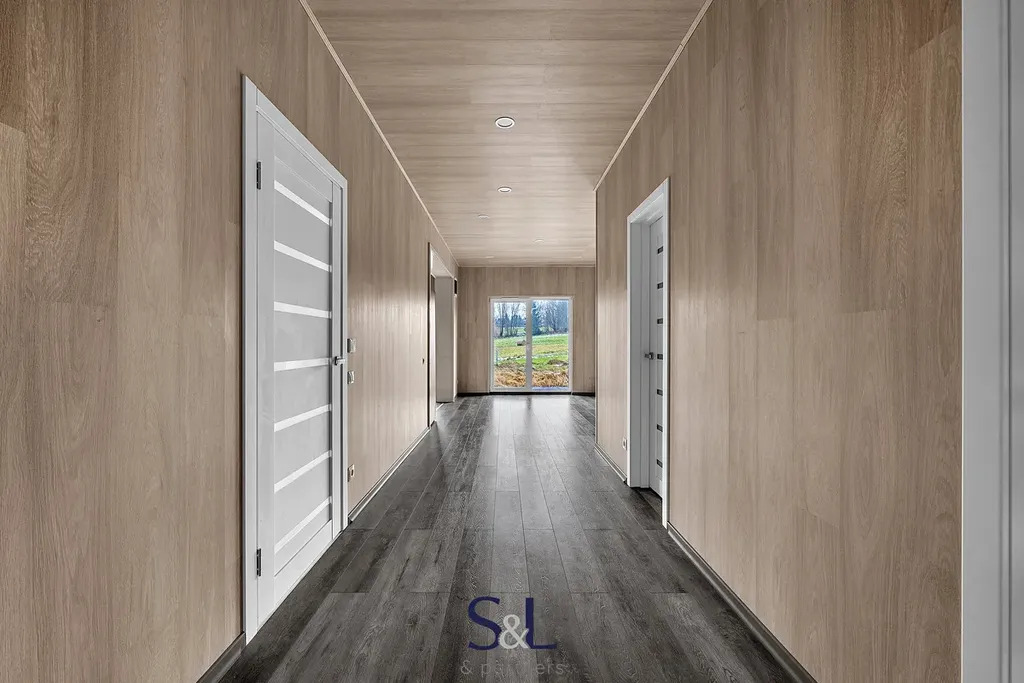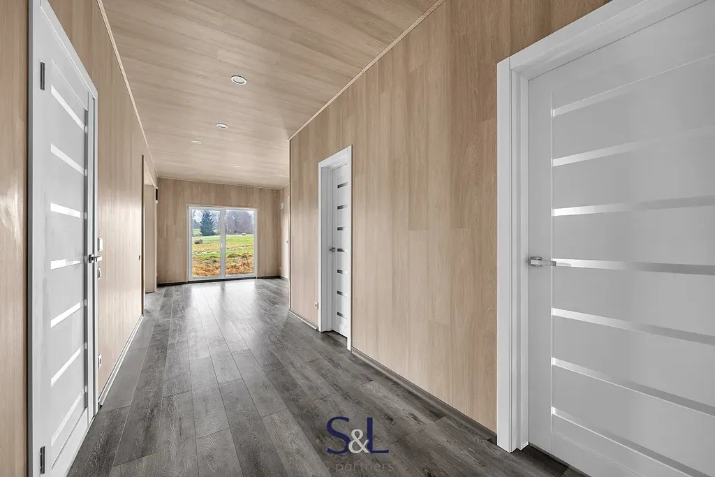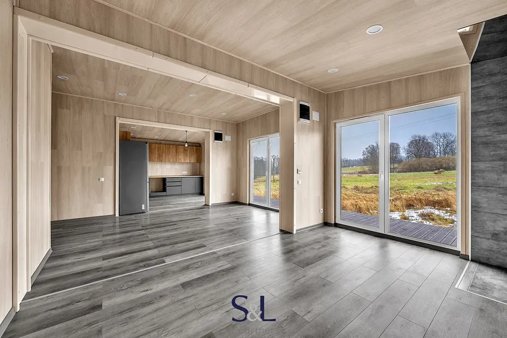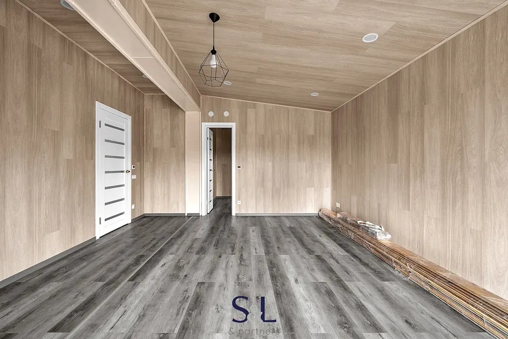 Dispozice: předsíň, chodba, technická místnost, komora/šatna, 2 ložnice (hlavní ložnice s velkou samostatnou šatnou), velký obývací pokoj s kuchyňským koutem a přímým vstupem na terasu, koupelna.