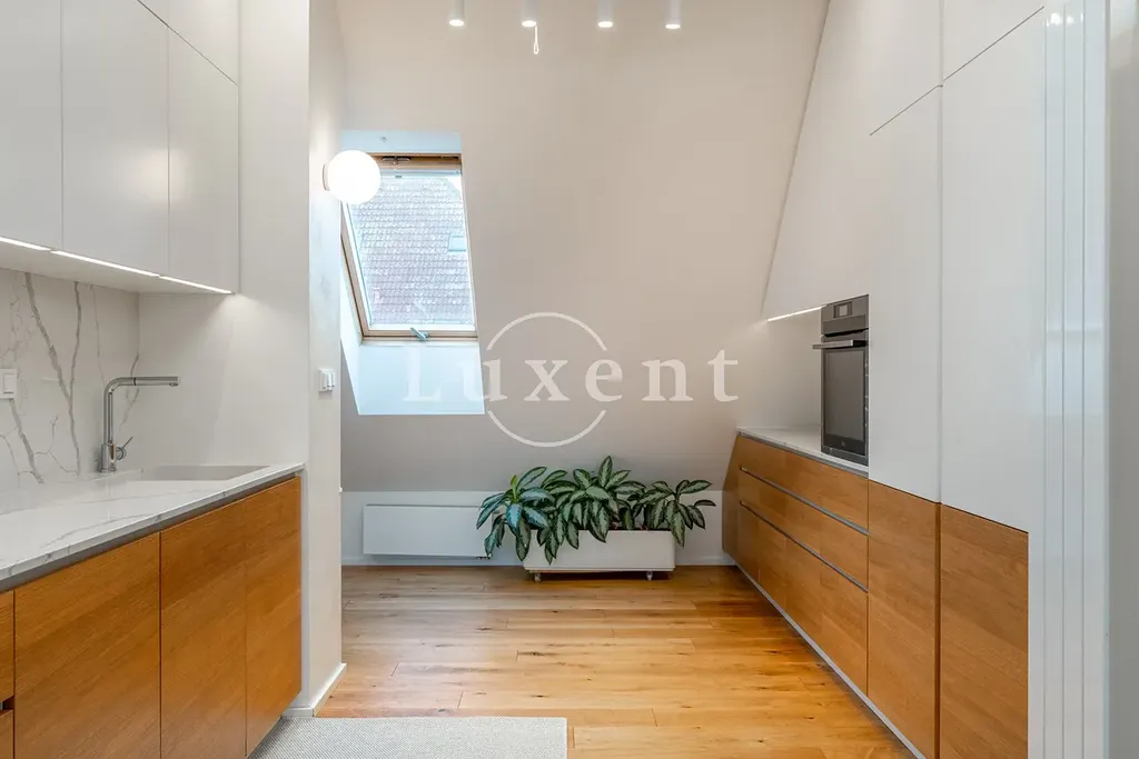 Nabízíme k dlouhodobému pronájmu výjimečný byt 4+kk o podlahové ploše 120 m², situovaný v nejvyšším patře moderní nástavby činžovního cihlového domu s výtahem v oblíbené pražské čtvrti Dejvice. K bytu náleží také prostorná terasa 18 m² orientovaná do klidného vnitrobloku, která zajišťuje naprosté soukromí a příjemné venkovní zázemí.