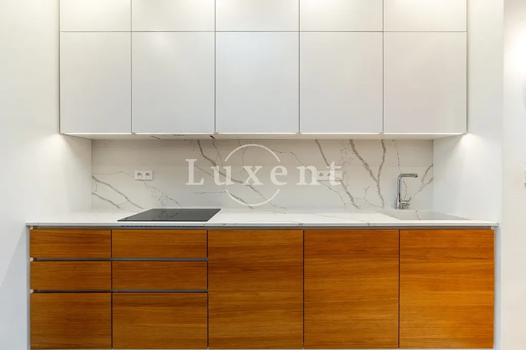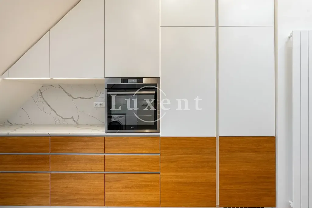 Byt je proveden ve vysokém standardu a je kompletně vybavený kvalitním nábytkem. V každé místnosti jsou úložné prostory na míru, v ložnici je instalována výkonná klimatizace. K dispozici je pračka se sušičkou, komora a zabezpečovací systém. Vstupní dveře jsou bezpečnostní.