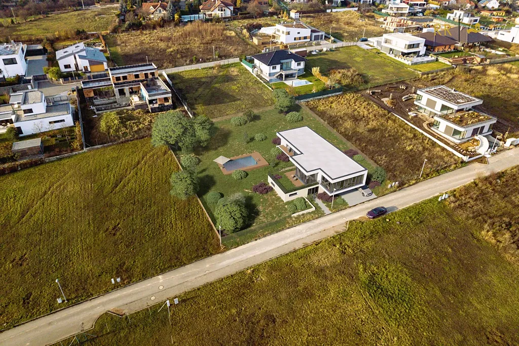 Dostatečná výměra, šířka i orientace umožňují kvalitní architektonický návrh s velkými prosklenými plochami, zahradou, bazénem či dalšími prvky, aniž by bylo nutné dělat kompromisy pro zachování soukromí nebo funkčnosti.