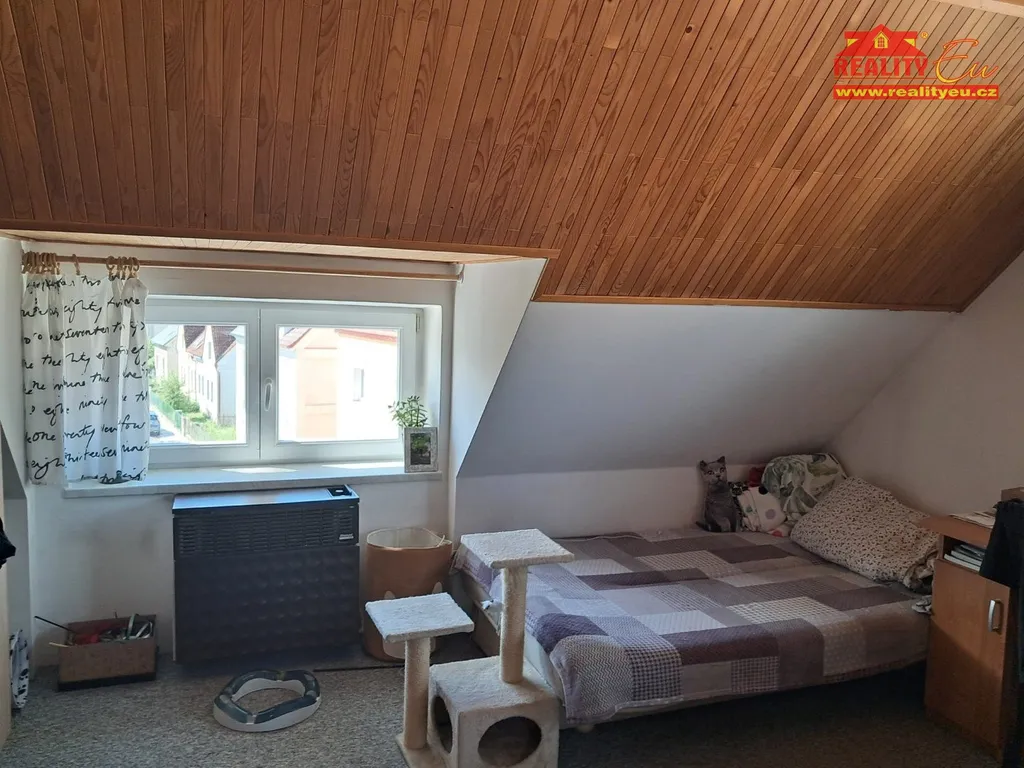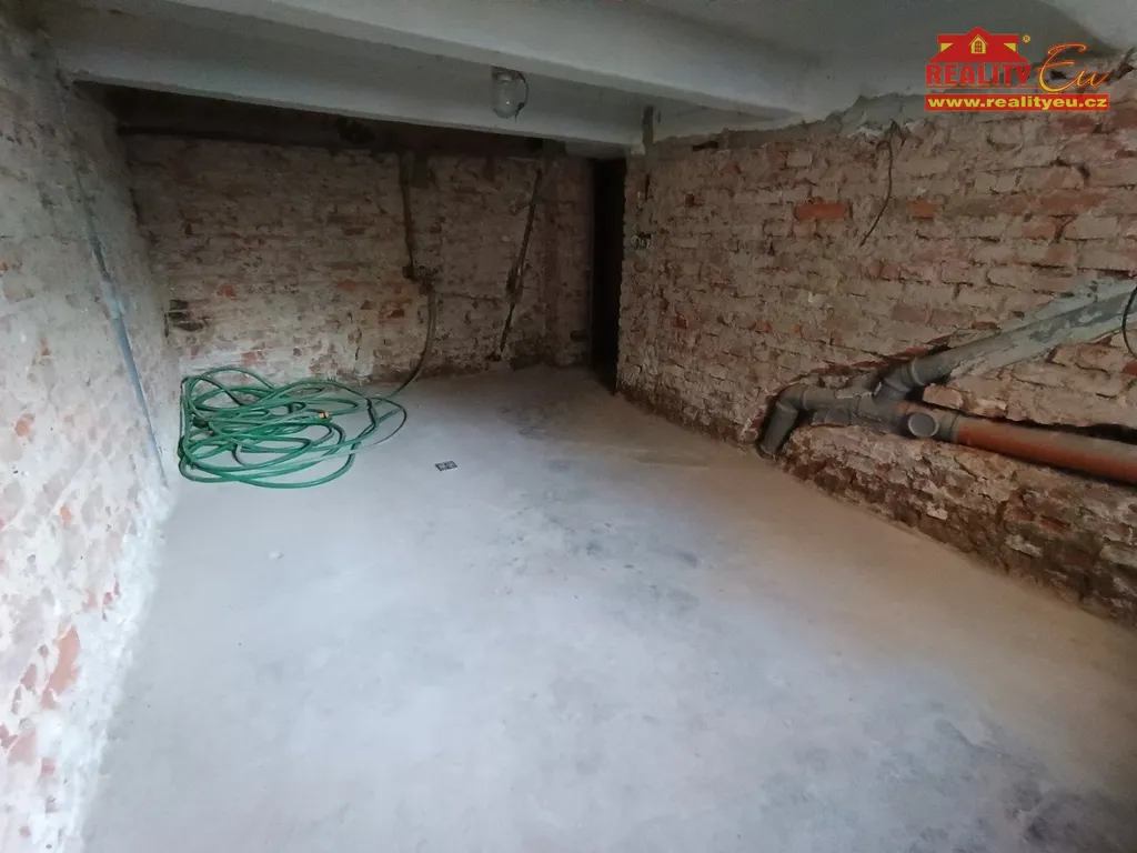 Zděný krajový rodinný dům se zahradou, s garáží, v centru obce mimo hlavní komunikace. Jedná se o standardní dům, s dvěma samostatnými bytovými jednotkami, který prošel částečnou rekonstrukcí interiéru. Nemovitost je k obývání ihned. Řadovka je výborně přístupná z místní asfaltové komunikace s příjezdem ke garáží i na zahradu. Dispozice: 1.NP vstupní veranda, předsíň a samostatná bytová jednotka 2 KK. V mezipatře další WC. Dále 2.NP disponuje kuchyní s jídelnou a koupelnou. Následuje další samostatné WC a ve 3.NP dvě obytné místnosti s mezonetem na spaní. Celá nemovitost je podsklepena. V domě při rekonstrukci byly z části vyměněny rozvody vody, odpady a vedení el. Plynové vytápění je doplněno krbovými kamny. Ohřev teplé vody el. boilerem. Rovná, dobře přístupná oplocená zahrada zpříjemňuje bydlení na vyhledávané adrese. Připojeno na obecní vodovod a kanalizaci, el. 230/400 V, plyn. Okna plastová. Celková výměra 403 m². Objekt je vhodný pro větší rodiny hledající okamžité bydlení v centru města.