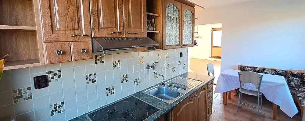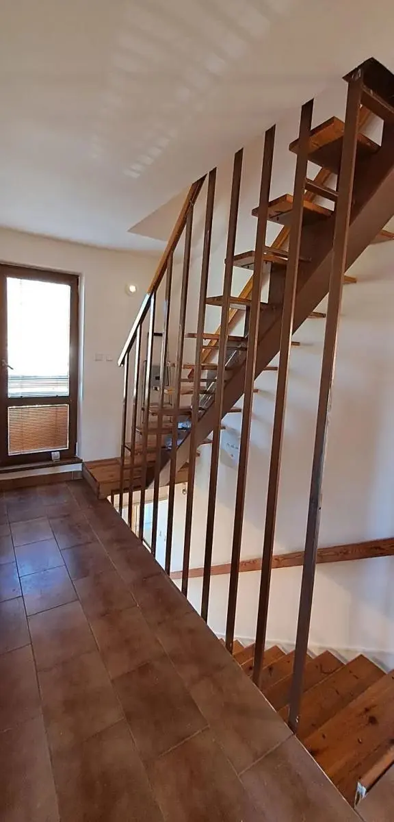 2.NP - ze schodiště je vstup do bytu o velikosti 3+1. Z chodby je vstup na balkon, samostatné WC, do spíže a do kuchyně s jídelnou. V kuchyni je kuchyňská linka s myčkou a elektrickou troubou. Z kuchyně vstup do pokoje s krbem, odkud je vstup na balkon. Komín je vyvložkovaný a vyčištěný, v komíně je krbová vložka na topení tuhými palivy. Z chodby je vstup do dalších dvou pokojů a do koupelny, která byla zrekonstruovaná před pár lety.