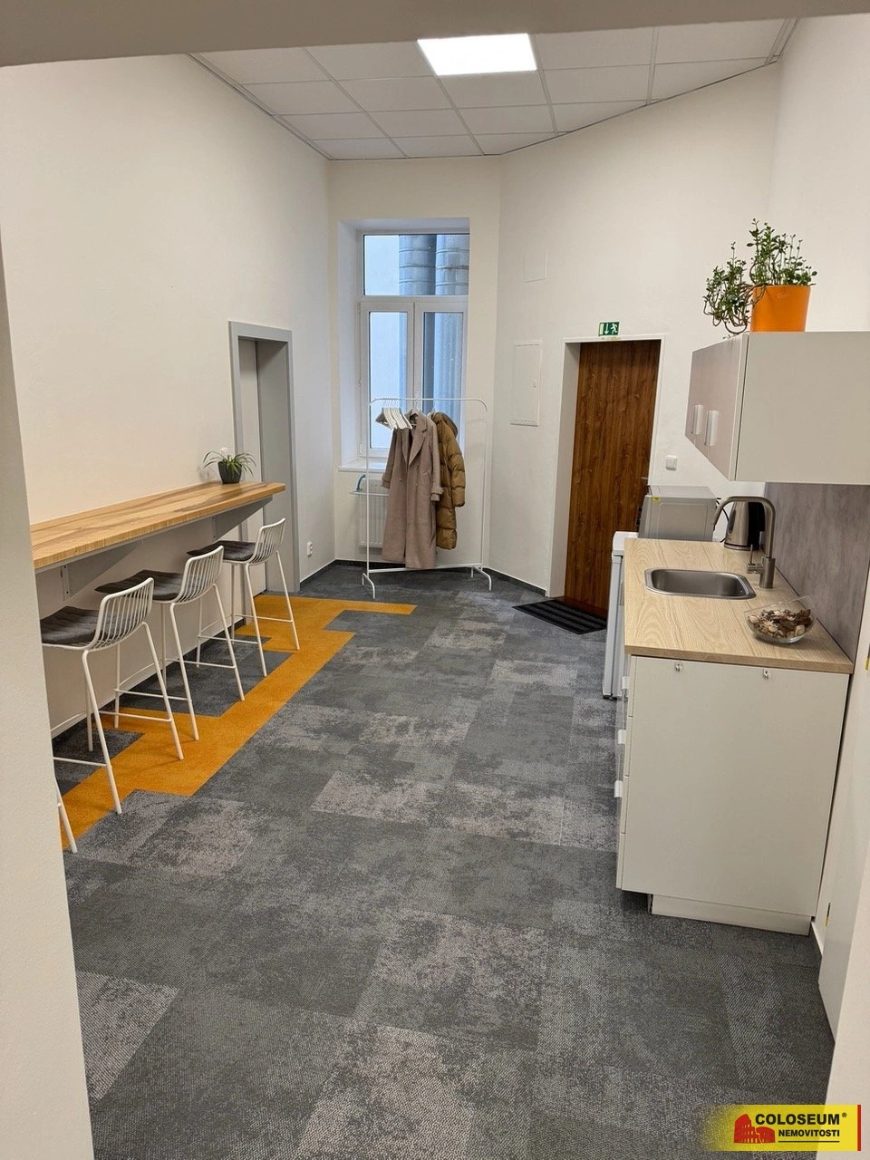 Nabízíme Vám k pronájmu nebytové - kancelářské prostory o rozloze cca 125m2 ve 3. patře domu na ul. Masarykova 32 v Brně. Prostory jsou kompletně nově zrekonstruovány, ve všech hlavních místnostech jsou klimatizační jednotky, na podlaze jsou položeny koberce, a dále je v prostorech kuchyňská linka (jde o kancelář, takže je bez spotřebičů). Součástí prostor je i místnost vlastního sociálního zázemí s WC, umyvadlem a sprchovým koutem.