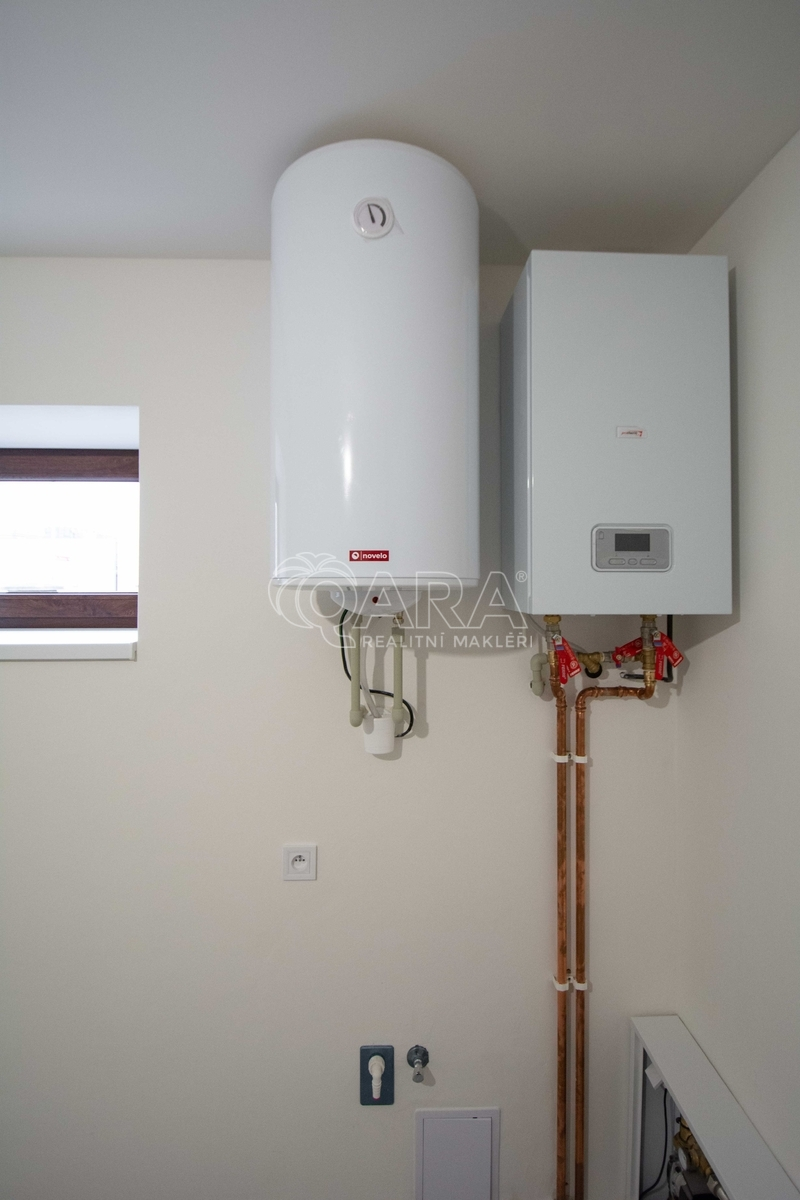 • V celém přízemí podlahové topení s napojením na nový elektrokotel + otopný žebřík v koupelně.