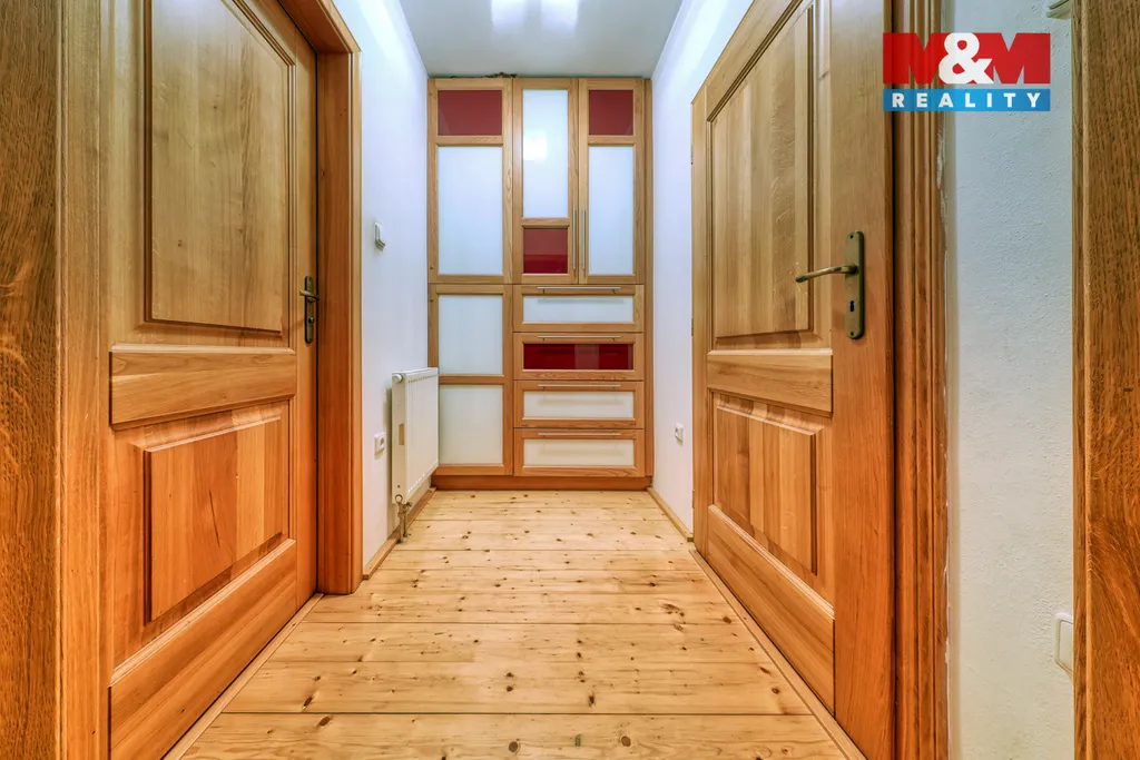 Nabízíme k pronájmu prostorný byt 3+1 o celkové ploše 122 m², který se nachází v rodinném dvoupodlažním cihlovém domě v samém centru Horažďovic, v ulici Podbranská. Byt je ve velmi dobrém technickém i estetickém stavu, je světlý a působí vzdušně. Disponuje novými okny, dřevěnými podlahami, vestavěnými skříněmi a dvěma samostatnými toaletami. V kuchyni, obývacím pokoji a koupelně je instalováno podlahové vytápění, k dispozici jsou také kamna. Vytápění je řešeno zplynovacím kotlem na dřevo nebo pelety.