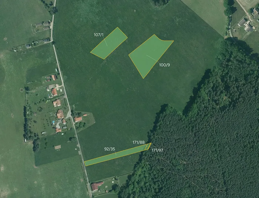 Dále je součástí prodeje vlastnictví 1/3 na listu vlastnictví 181, a to konkrétně na parcelách 100/9, 107/1, 367 a 368. V prodeji tvoří dalších 3 145 m² travního porostu.