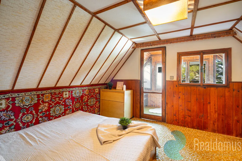 Podkroví naopak nabízí jeden velký pokoj, který lze využít jako ložnici nebo možnost jej vybavit více lůžky. Zasklený balkon ve stylu zimní zahrady – perfektní pro večerní relax s knihou s výhledem do přírody.