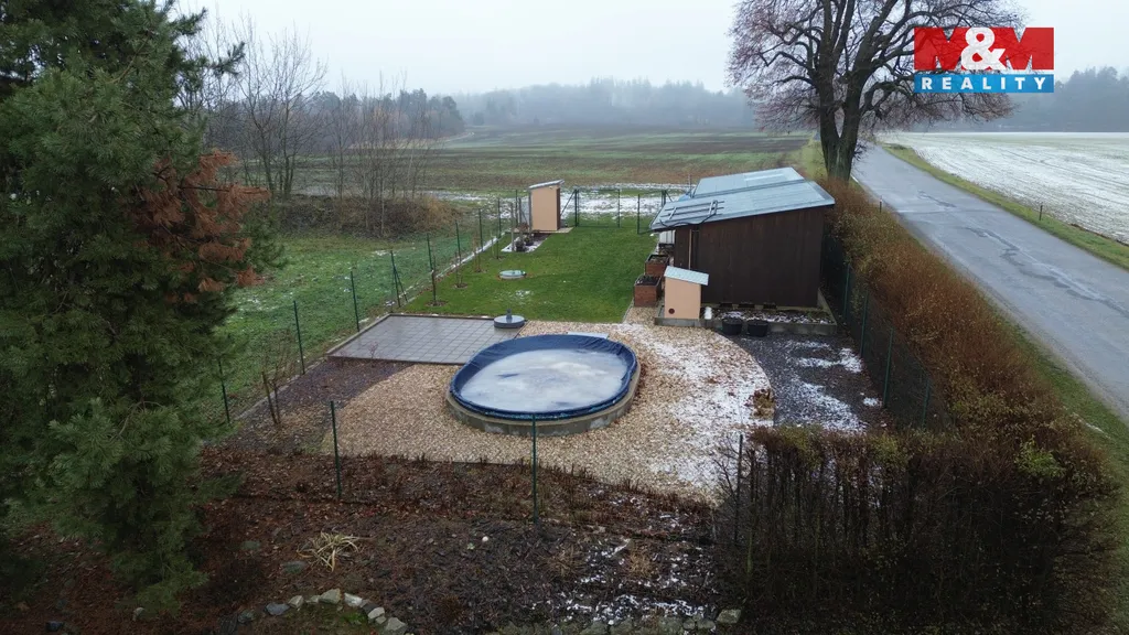 Pergolu s kuchyňským koutkem a s posezením 20 m². Garáž 8,16 m² a zahradní domek 20,06 m² s možností předělat na ložnici. Vrt na vodu hluboký 24 m. Zpevněnou příjezdovou cestu.