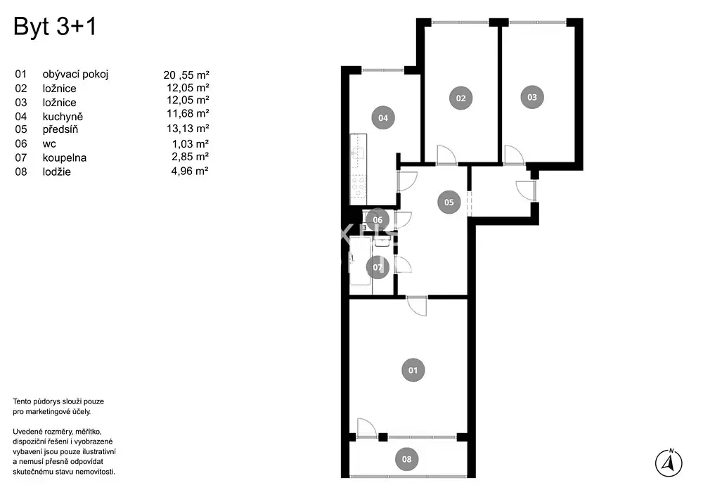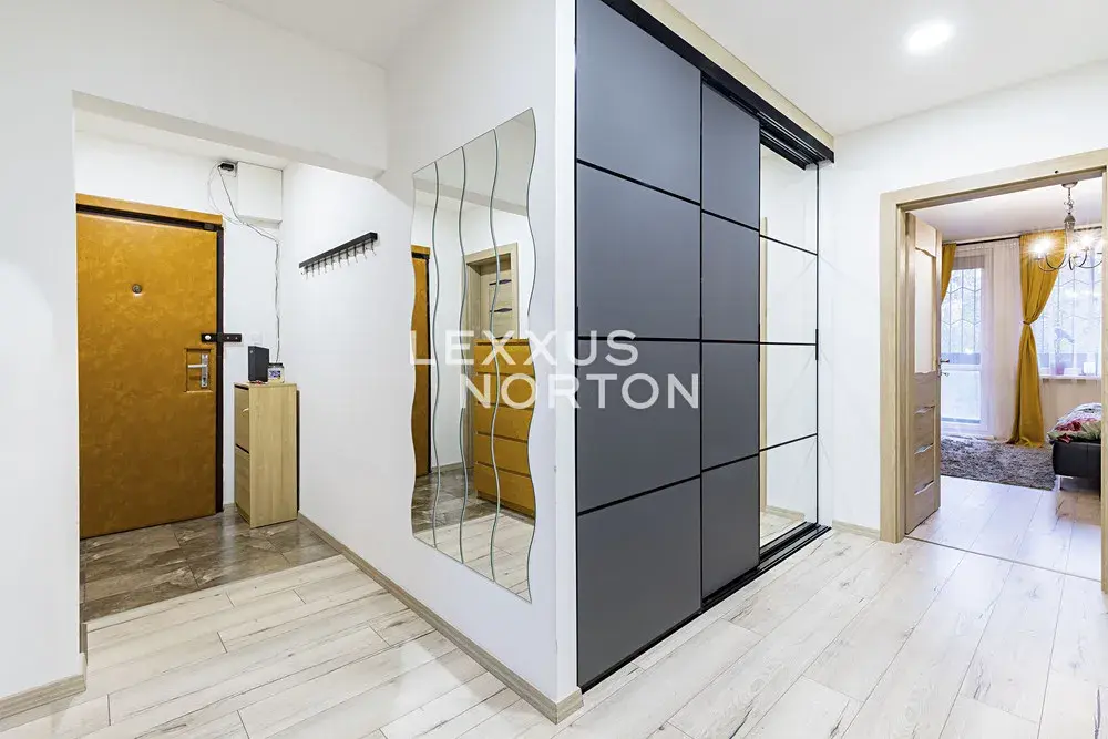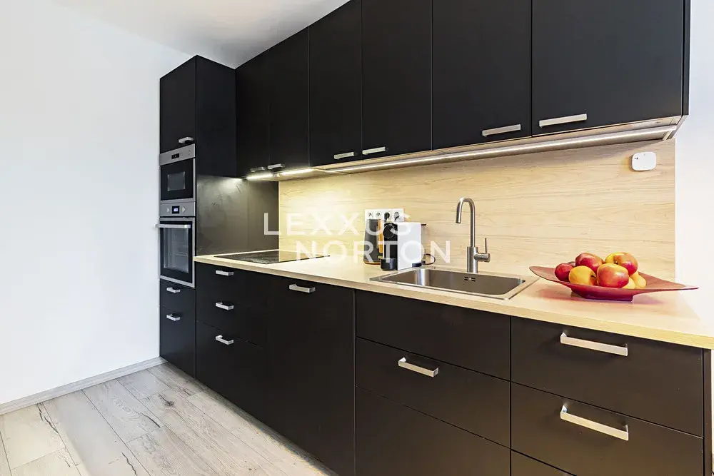 Byt je vybaven kvalitními moderními prvky, které zajistí komfortní bydlení. V prostorné předsíni se nachází velká vestavěná skříň nabízející dostatek úložného prostoru pro celou domácnost. Kuchyň je plně zařízená včetně všech spotřebičů. V celém bytě jsou položeny elegantní vinylové podlahy, které jsou nejen estetické, ale také praktické a snadno udržovatelné. Koupelna je vybavena prostornou vanou, která umožňuje příjemnou relaxaci po náročném dni. Lodžie je ideálním místem pro posezení s ranní kávou nebo večerní odpočinek s výhledem do okolí.