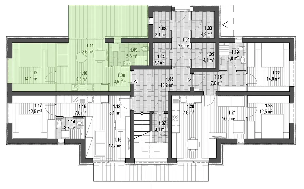 Dům je součástí projektu, kde byl již jeden dům vystavěn (obsahuje větší byty) a je možné se přijet podívat na prohlídku dokončeného bytu ve vedlejší budově. Obě budovy jsou v totožném standartu.