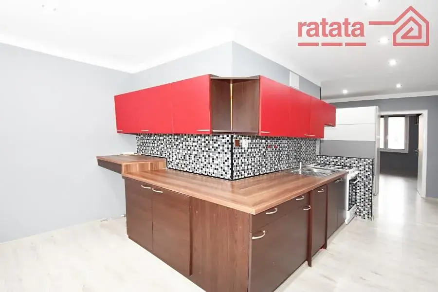 Je zde velká kuchyňská linka, plynový sporák, myčka, na chodbě šatní skříň, sprchový kout a WC. Na podlahách je položena plovoucí podlaha. Byt je volný k nastěhování od 1.1.2026.