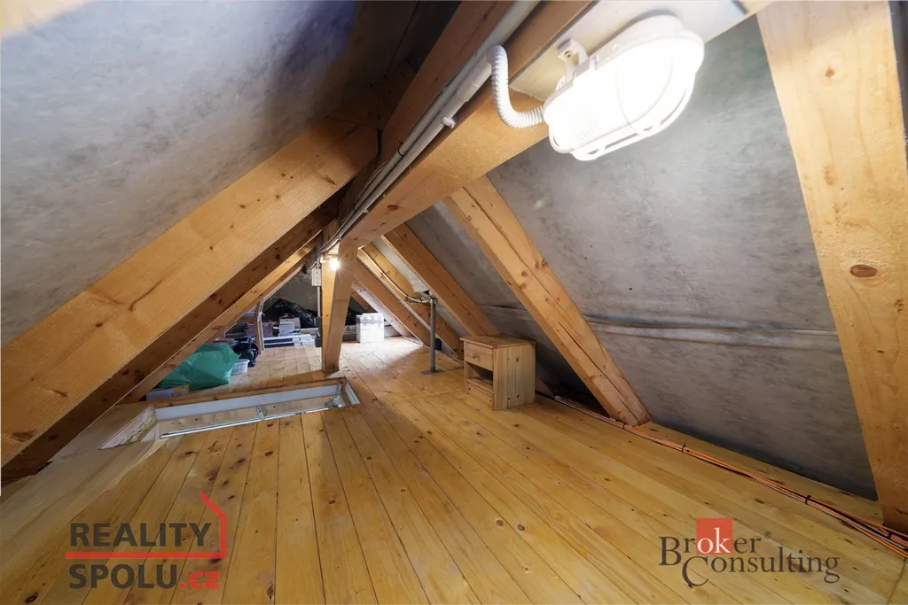 První patro poskytuje dva samostatné pokoje a vstup na půdu poskytující dostatek úložného prostoru.