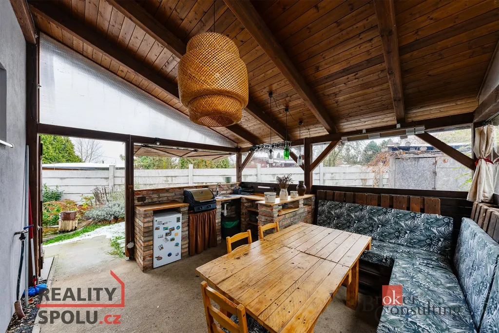 Na pozemku se nachází také prostorný altán a kryté parkovací stání.