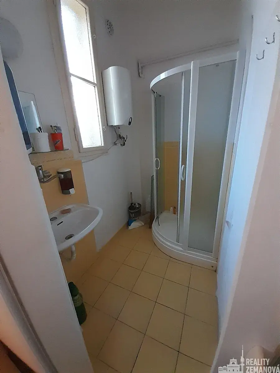 - hygienické zázemí (2,8 m2) se sprchovým koutem a boilerem na ohřev vody, a