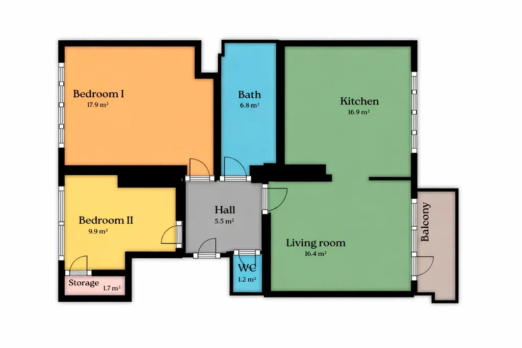 Světlý byt 3+1 o podlahové ploše 77 m² s balkonem se nachází v komorním domě o pouhých čtrnácti bytových jednotkách, kde jsou na každém patře pouze dva byty, což zaručuje klidné bydlení s minimálním pohybem sousedů na patře.