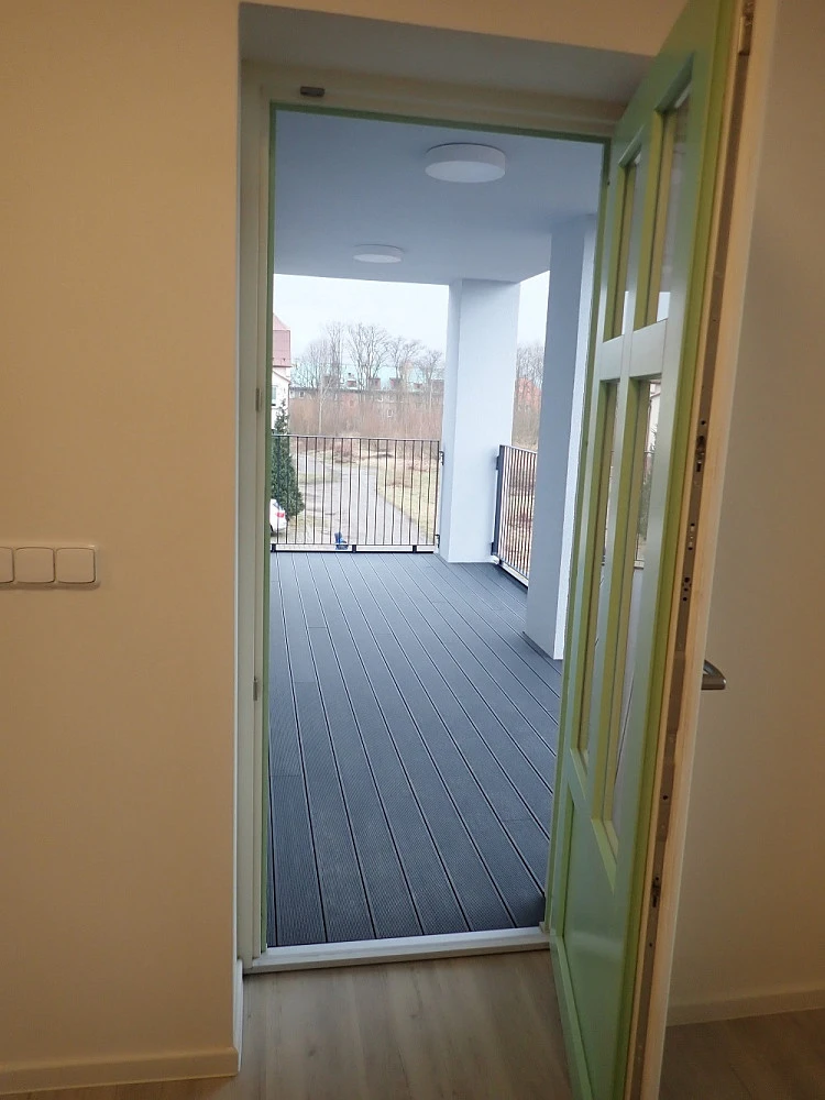 Bytová jednotka o dispozici 3+KK o výměre 94,4 m² disponuje velkou obývací částí s kuchyňským koutem, 2x samostatnou ložnicí a prostornou terasou. Z předsíně je vstup do koupelny s vanou, na toaletu s vlastním vchodem a do menší komory. Vstup na terasu je zajištěný z obývací části bytu a z jedné ložnice.