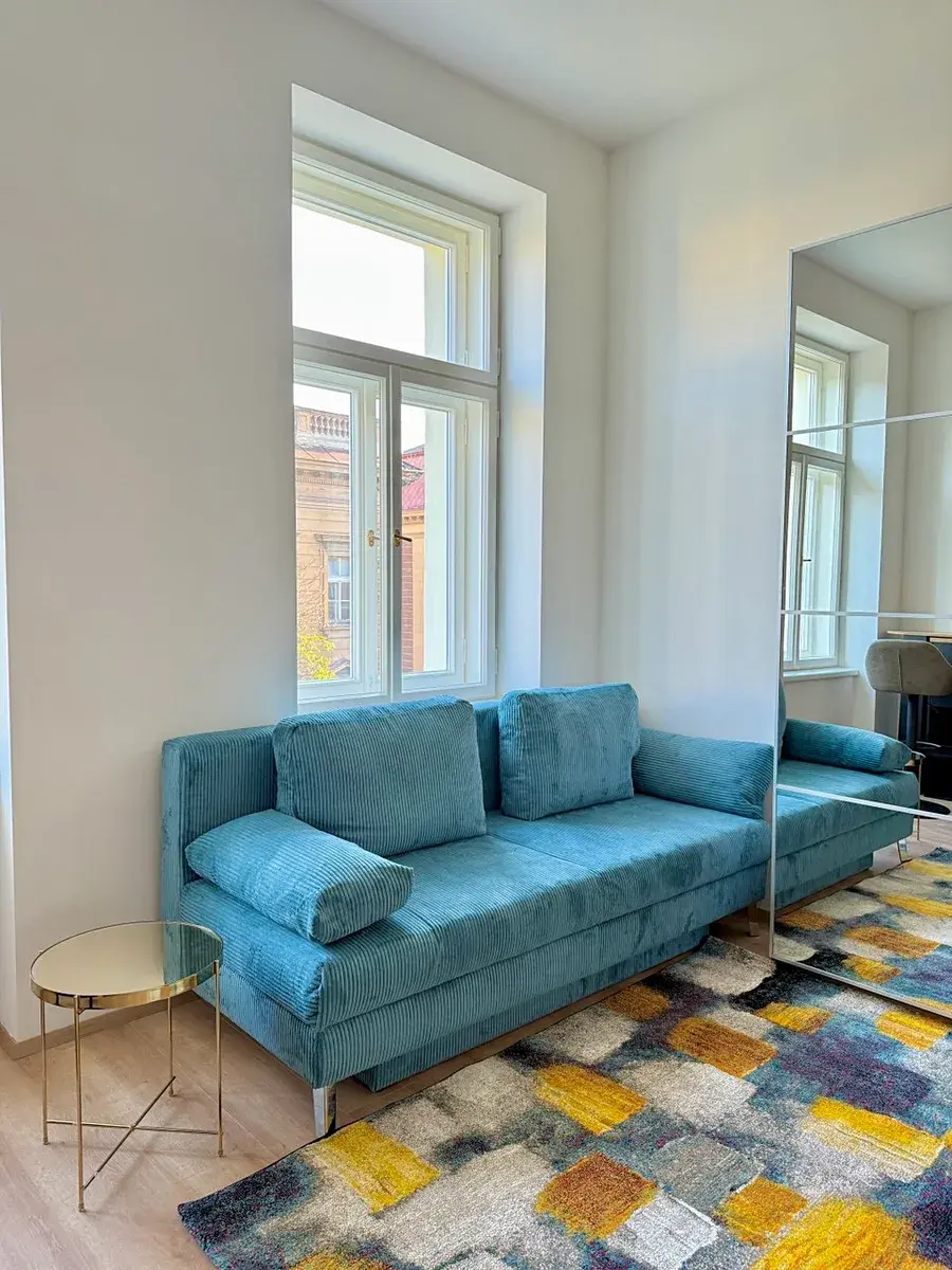 Byt o celkové ploše 22 m² (obytná část 17,2 m² + patro na spaní 5 m²) se nachází ve 4. patře udržovaného činžovního domu po rekonstrukci s výtahem. Součástí nájmu je také sklepní kóje.