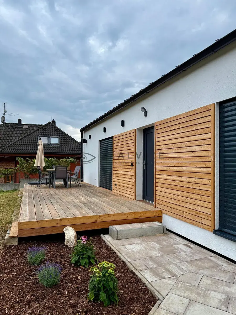 Nabízíme ke krátkodobému pronájmu zcela nový a moderně vybavený domeček o dispozici 2+kk a užitné ploše 53 m² ve Starých Hodějovicích u Českých Budějovic s chytrou domácností LOXONE.