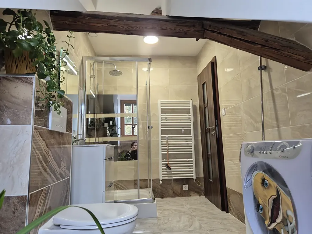 Nabízím k pronájmu byt 2+kk o výměře 58 m2, byt č. 6, v obytném podkroví rekonstruovaného klasicistního domu z 18. století. Od roku 1992 je dům prohlášený národní památkou. V roce 2021 byl dům kompletně rekonstruovaný. V prvním nadzemním podlaží domu jsou prostory restaurace, která je rekonstruovaná. Byt je vytápěný vlastním plynovým kotlem a má své vlastní měřidlo elektrické energie, plynu a vody. V bytě je v podstatě vše nové, koupelna, kuchyňská linka, podlahy a také nová lednice značky Beko. K pronájmu je možný i s vybavením, v přiložené fotodokumentaci. Byt se nachází v obytném podkroví, kam vede kamenné schodiště. Nájemné je ve výši 11.000,- Kč měsíčně. K nájmu se ještě platí poplatky za popelnici 350,- Kč a zálohy na vodu (3 osoby 1.000,- Kč), internet 400,- Kč. Elektřinu a plyn si nájemce napíše na sebe. Vratná kauce je ve výši 22.000,- Kč. Nájemné se platí vždy na měsíc následující. Poplatek za zprostředkování pronájmu je ve výši 10.000,- Kč. K nastěhování možný je možný ihned. Poblíž domu je mnoho možností k parkování. Více informací při osobní schůzce. Majitel domu si přeje nájemce výhradně pracující, bez exekucí nebo insolvence. Tepelný štítek nebyl zatím dodán, proto uvádím PENB třídu „G“. Pro více informací mě kontaktujte.