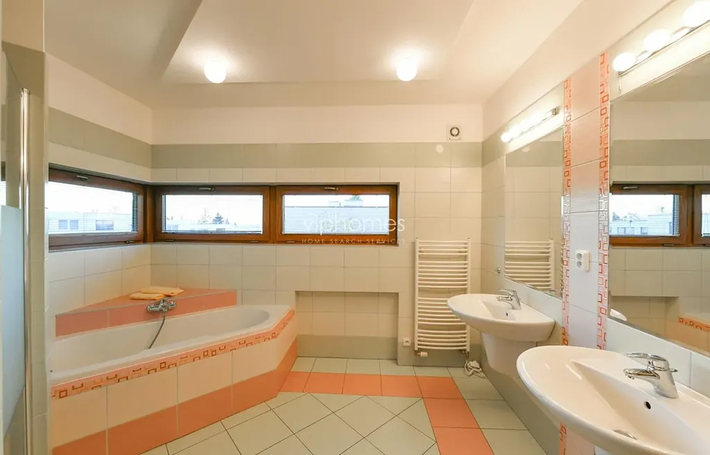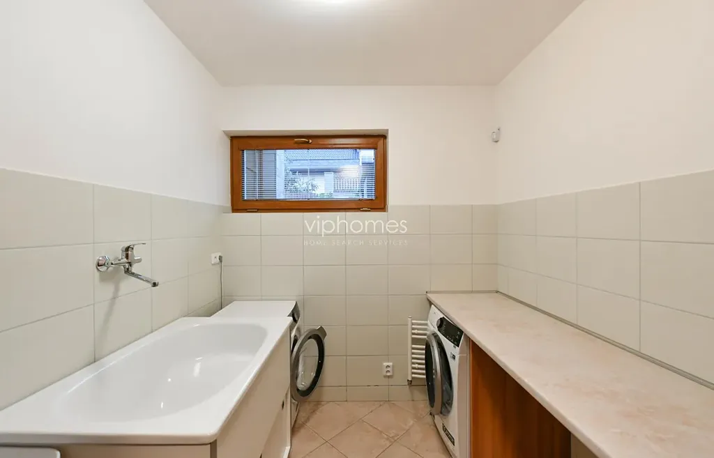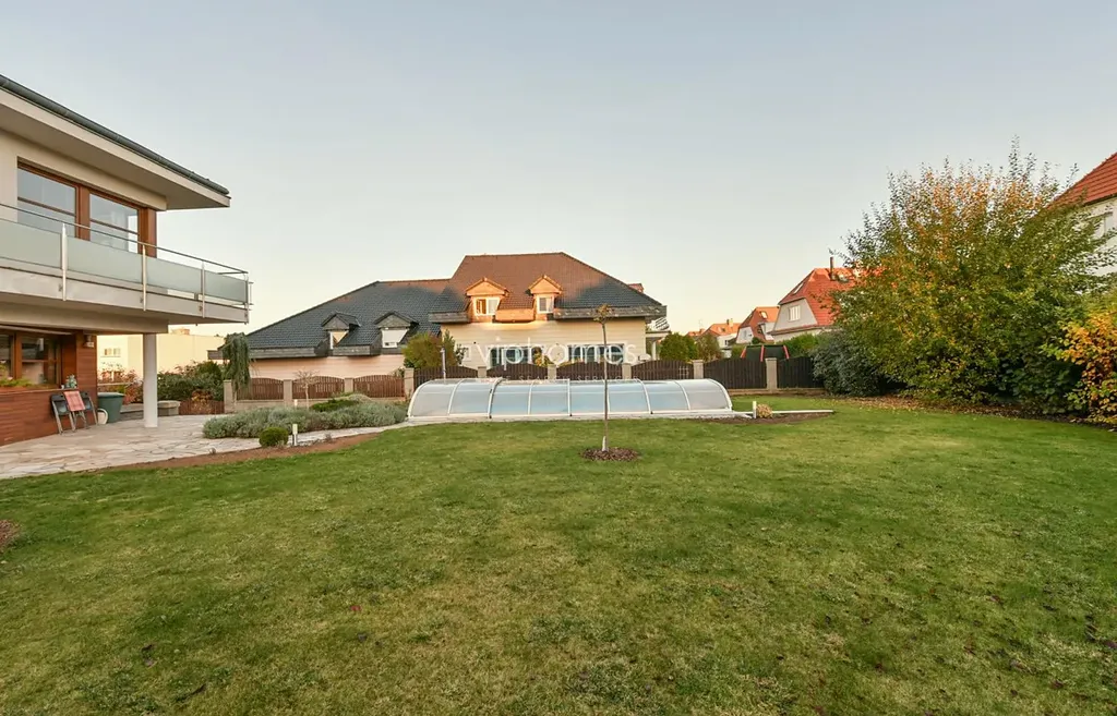 Vila vyhovuje nejnáročnějším požadavkům – bazén, vestavěné skříně, žaluzie, pračka, sušička, alarm, video intercom.