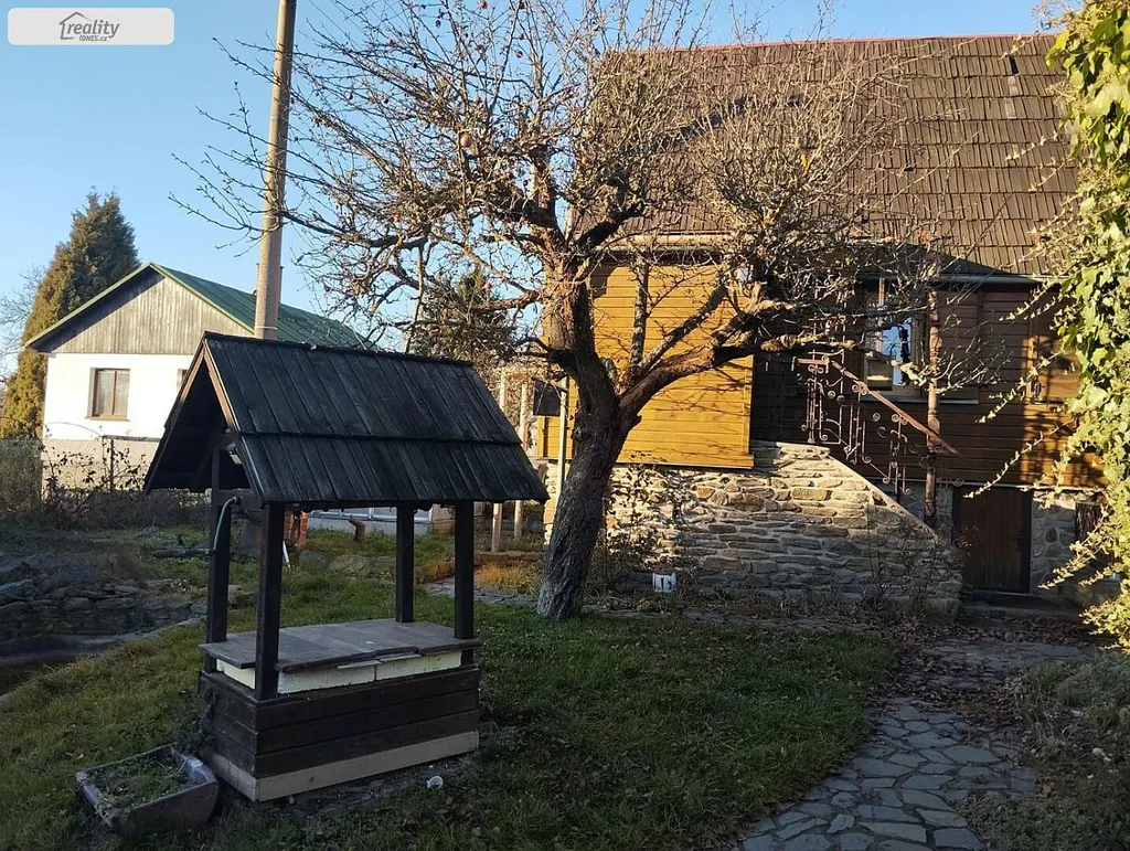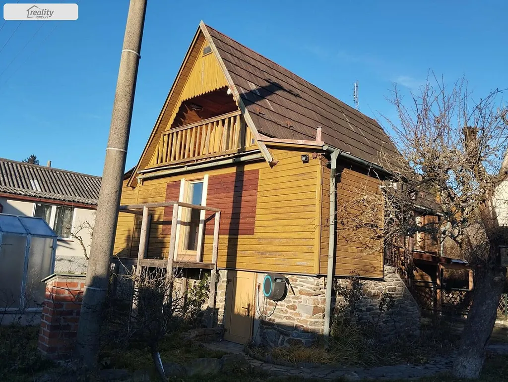 Chata ve spodní části pozemku je přízemní a poskytuje relaxaci na klidném místě.