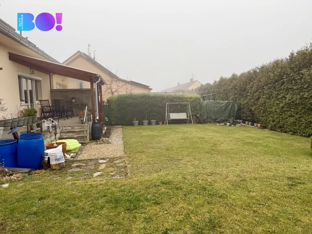 Na udržované a útulné zahradě je terasa s posezením, se vstupem i z obývacího pokoje. Na zahradu je také vjezd vedle domu přímo z ulice. Velkou výhodou jsou i možnosti parkování, které lze v garáži, na pozemku, nebo před domem.