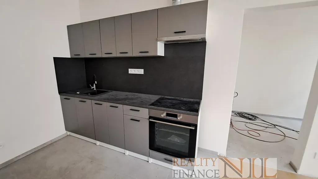Zcela nový byt se skládá ze dvou místností – obývací pokoj s kuchyňským koutem a ložnice. V obýváku i ložnici je okno s výhledem do ulice. Koupelna je vybavena vanou, umyvadlem a toaletou. Byt je zařízený novou kuchyňskou linkou (elektrická trouba, el. varná deska, digestoř, příprava na myčku). Ohřev vody a topení zajišťuje plynový kotel, který je umístěný v koupelně. Podlahy – vinyl v pokojích, dlažba v kuchyňském koutě, předsíni a koupelně, okna plastová, zateplená fasáda.