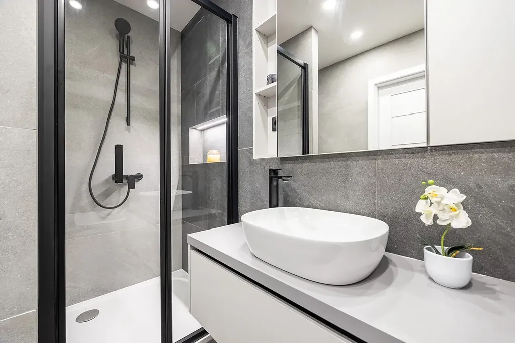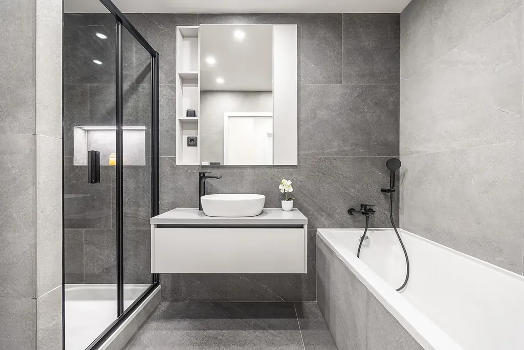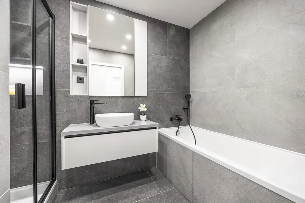 - nová sanita (vana, sprchový kout, umyvadlo, skříňka, toaleta)