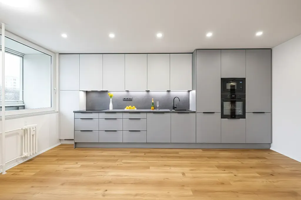 - nová kuchyňská linka vyrobena na míru se spotřebiči (značková elektrická trouba, myčka, indukční deska, digestoř, osvětlení, dřez)