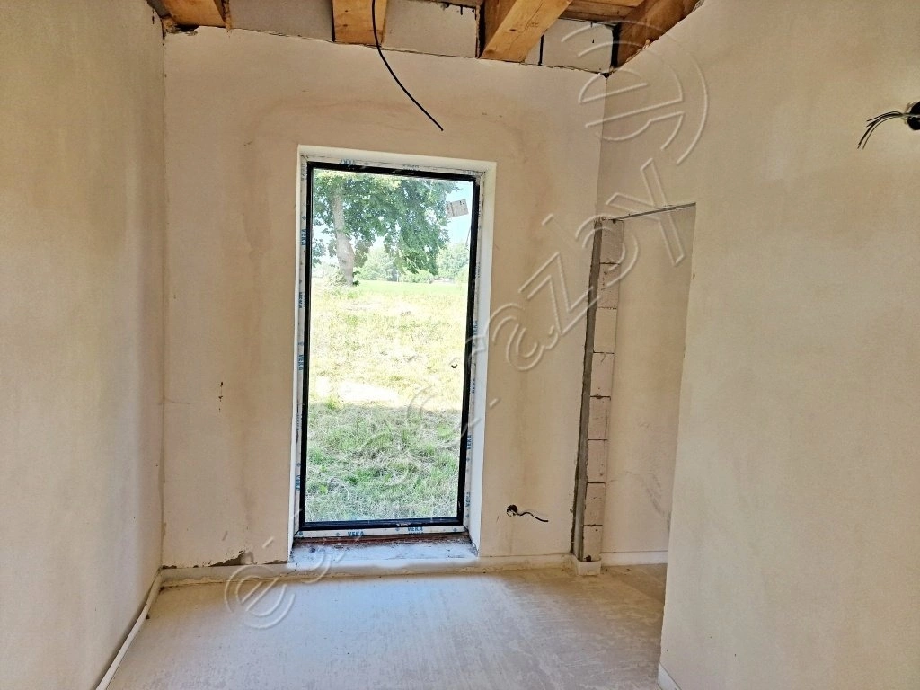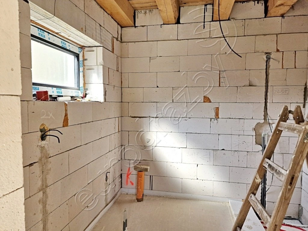 Jedná se o volně stojící, rozestavěný rodinný dům s 1.NP. Rodinný dům je nepodsklepený, zděný, přízemní, typ bungalov, zastřešený rovnou střechou, půdorysného tvaru písmene „T” o jedné bytové jednotce vel.5+kk . Jedná se o typizovaný dům od firmy GServis, Orlando 5. Za vchodovými dveřmi vlevo měla být technická místnost, podle sdělení majitele změna na pracovnu, rovně je vchod do obývacího pokoje s kuchyní. Oproti projektu je provedena změna – není vyzděna příčka u bývalé pracovny. O tento prostor je zvětšený obývací pokoj. Za vchodovými dveřmi vlevo je podlouhlá chodba, ze které je vstup do tří pokojů a koupelny s WC. Další koupelna s WC je přístupná ze zadního pokoje. Jsou dokončené základy, svislé konstrukce, zastřešení, osazena okna, balkónové a vchodové dveře, vnitřní omítky, rozvody voda, kanalizace, z větší části elektroinstalace, podlahové rozvody vytápění, z vnější části bylo započaté zateplení, osazené nádržky splachovacích záchodů tzv. geberity. Podle sdělení jsou dokončené přípojky na veřejný vodovod, splaškovou kanalizaci a elektro. PENB - „B”.