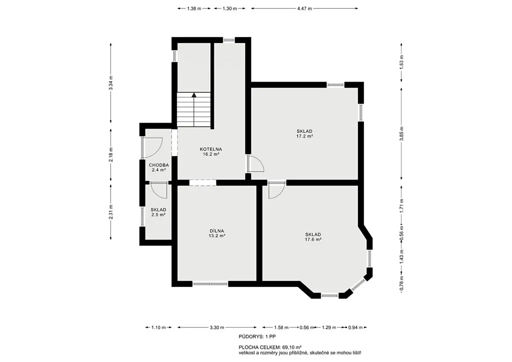 Suterén: kotelna, dílna, sklady