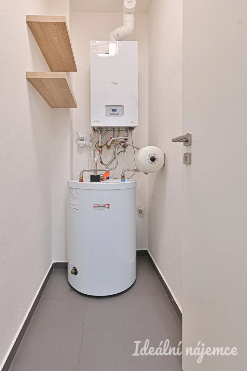 Dále se zde nachází samostatný pokoj. Pokoj je nevybavený. V koupelně se nachází sprchový kout, umyvadlo, zrcadlo a WC. V bytě jsou vinylové podlahy a dlažba. Vytápění zajišťuje vytápění s radiátory.
