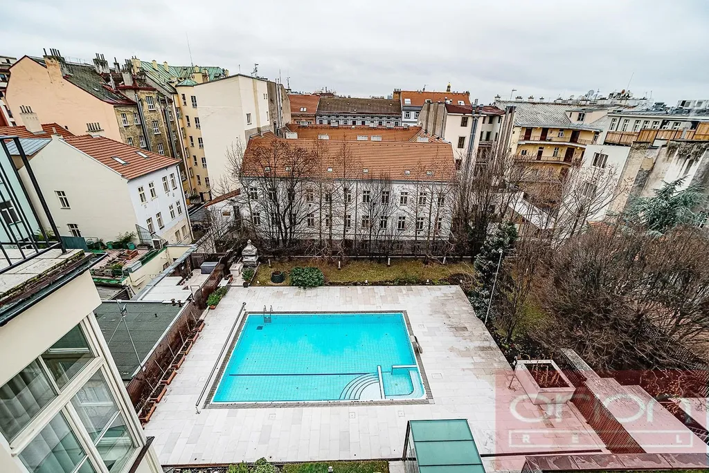 Nabízíme k pronájmu luxusní zařízený byt 1+kk s balkonem ve 4. patře neorenesančního domu Rezidence Italská z konce 19. století s udržovanou soukromou zahradou s vyhřívaným bazénem ve vyhledávané lokalitě Praha 2 - Vinohrady. Rezidenční dům je po kompletní rekonstrukci se zachováním všech architektonických prvků a je vybaven prémiovými a luxusními materiály. Nadstardantně zařízený byt o velikosti 38 m2 nabízí obývací pokoj orientovaný do vnitrobloku s výhledem na zahradu a bazén, plně vybaveným kuchyňským koutem vč. nádobí, koupelnu s vanou a s toaletou a balkon a velikosti 11 m2. Byt je vybaven italským nábytkem, ručně tkanými koberci, luxusními spotřebiči,, na podlahách jsou dřevěné parkety a dlažba. K vybavení bytu patří pračka se sušičkou, klimatizace, videotelefon, satelitní TV. Možnost zajistit pravidelný úklid bytu. V bytě jsou zachovány původní prvky. V rámci rezidence je také sauna, několikapatrové garáže, výtah, kamerový systém a ostraha. Součástí domu je vyhlášená italská cukrárna s produkty dovezenými přímo z Itálie. Možnost parkování v podzemní garáži za cenu od 200 Eur + DPH. Dům se nachází jen pár kroků od stanice metra Náměstí Míru, pár minut chůze na Václavské náměstí. V blízkosti je množství kaváren, vyhlášených restaurací, bister, lokálních obchodů, oblíbený park Riegrovy sady.