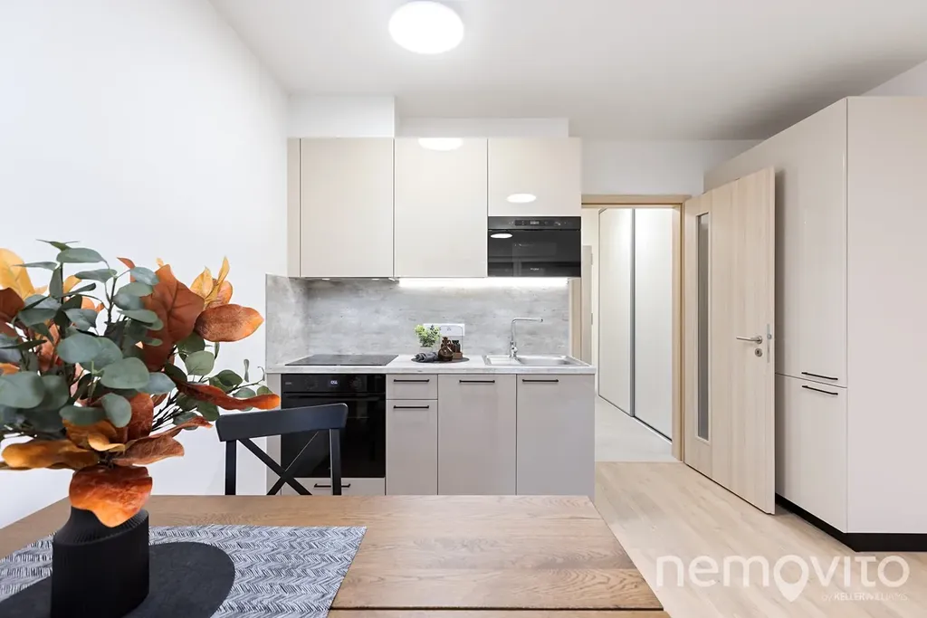 Nový byt 1+kk s bohatým příslušenstvím, který byl dokončen v dubnu 2025, a na který platí záruka do roku 2030 (Central Group). K dispozici je balkon, sklep i garážové stání. Byt je kompletně dokončený vč. kvalitní kuchyně a vestavěné skříně, přičemž několik prvků bylo řešeno v rámci nadstandardu.