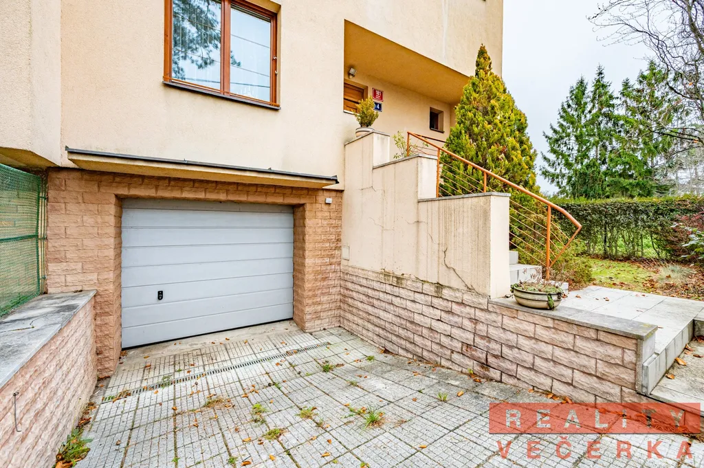 Do suterénu lze vstoupit z přízemí domu nebo zvenčí přes garáž (26,3 m2), či samostatným vstupem ze zahrady. Mimo garáž jsou zde prostory na technické zázemí – plynový kotel na vytápění domu zn. Vailland, sušárna prádla, úložné místnosti. Garážová vrata jsou na dálkové ovládání