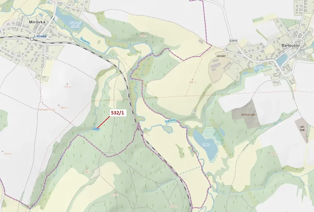 Lesní pozemek o výměře 870 m2, parcelní číslo 532/1, podíl 1/1, katastrální území Mírovka, obec Havlíčkův Brod, obec s rozšířenou působností Havlíčkův Brod, okres Havlíčkův Brod, Kraj Vysočina.
