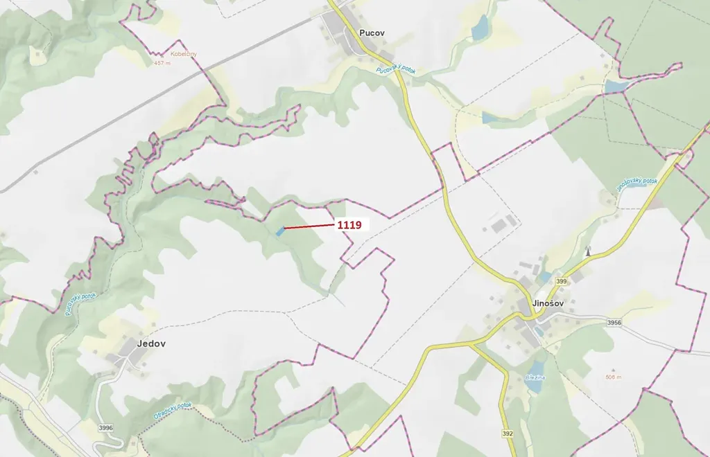 Lesní pozemek o výměře 1976 m2, parcelní číslo 1119, podíl 1/1, katastrální území Jedov, obec Náměšť nad Oslavou, obec s rozšířenou působností Náměšť nad Oslavou, okres Třebíč, Kraj Vysočina. Po těžbě.