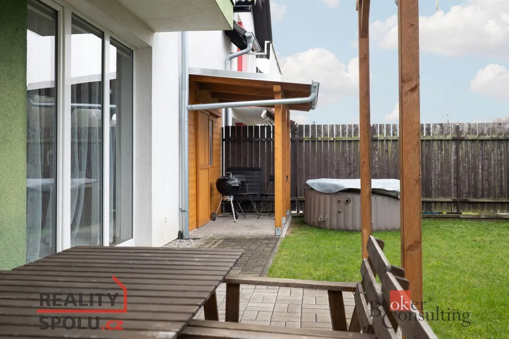 K domu náleží garáž s přístupem jak hlavními vraty, tak ze zahrady. Bezpečí domu zajišťuje kamerový systém.